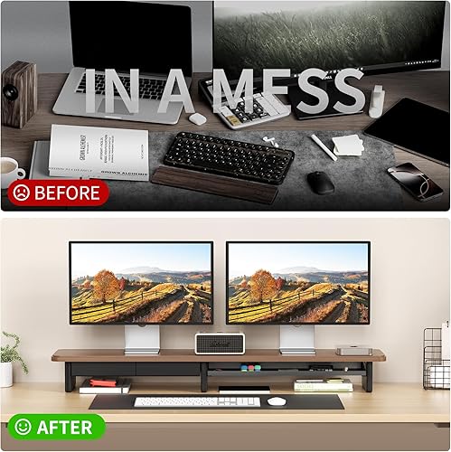 Comment on "Large Dual Monitor Stand For Desk,43 Inch Desktop Computer Riser with Metal Drawer Desk Shelf Organizer For Computer/Laptop/PC/Printer/TV"