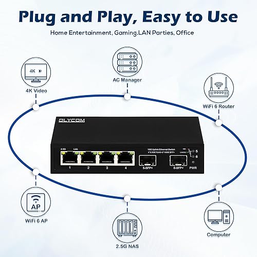 Application: The 2.5G Ethernet switch supports all your devices, including 2.5G WiFi 6 AP, 2.5G NAS, 2.5G PCIe Adapter, 2.5G Server, gaming computer, 4K video, and more.