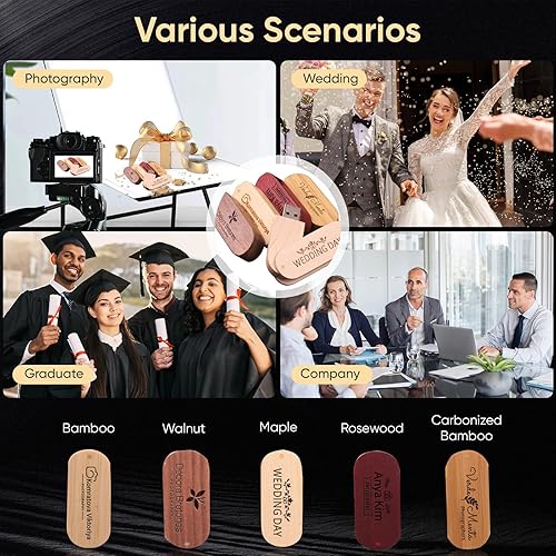 • 【Personalized USB Flash Drive】Support laser engraving or color printing of names, logos, commemorative dates or photos, to create your own wooden flash drive. Whether it is a business gift, employee benefits, graduation and wedding commemorations, or even a photographer's exclusive gift for clients, it is a practical and full of heartfelt unique choice
