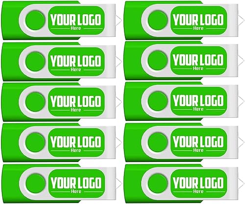 Custom USB Flash Drive 256MB 25 Pack Customized Thumb Drive with Swivel Clip Customizable USB Drive Logo Print FEWINA Branding with Personalized USB Stick (25 Pack,Green)