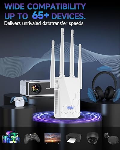 2025 WiFi Extender Internet Booster, Wireless Routers Amplifier, Mesh Wi-Fi 80% Faster | Broader Than Ever, Support More Network Devices at Home, 1-Tap Setup