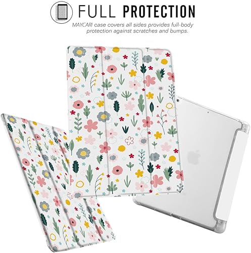 MAYCARI Colorful Flowers Case for iPad 10.2 inch 2021/2020/2019 with Pencil Holder, Original Pattern iPad 9th/8th/7th Generation Soft TPU Back Protective Cover Shell, Auto Sleep/Wake Slim Shell(Cute Flowers Branches,10.2 inch iPad (2021/2020/2019))