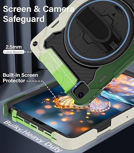 for iPad Pro 11 Case 4th 3rd 2nd 1st Gen (2022 2021 2020 2018) & iPad Air 5th 4th Generation 10.9 inch Case with HD Screen Protector, 360 Rotating Kickstand/Hand Strap, Shoulder Strap(Black+Green,(no Pen Holder)Air 5/4th &Pro11 4th/3th/2nd/1st)