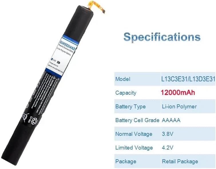 【Compatible Models】 This is an independent lithium polymer battery that is not sold with the product. Battery Model: L13C3E31/L13D3E31. This Replacement battery Compatible for Lenovo YOGA 10" Tablet B8000 B8000-F B8000-H B8080-F B8080-H B8080-HV 60046 60047 60063. Before purchasing, please ensure that it matches your device model.