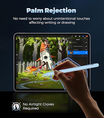 【Tilt Sensitive and Palm Rejection】No gloves required - This stylus for iPad(A16) with palm rejection technology allows you to rest your hand comfortably on the iPad touchscreen without glove. By adjusting the angle of this ipad 9th generation pencil, you can create varying line widths and shadows, meeting the needs of professionals. Which is very suitable for painting and sketching, to write and draw just like on paper. *NOTE: Does not support Pressure Sensitivity