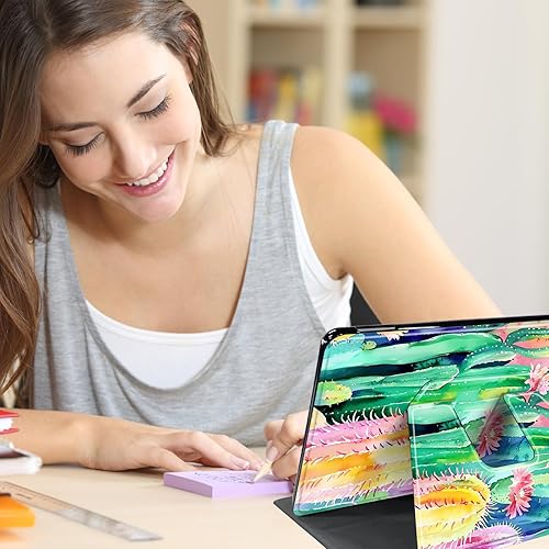 Case for iPad 9.7 Inch iPad 6th/5th Generation 2018 2017(Model: A1893 A1954 A1822 A1823), 360 Degree Rotating Stand Smart Protective Cover Case for iPad 9.7 Inch 2018/2017, Pink Flowers and Bee(Watercolor Cactus Floral -2578,for iPad 9.7 Inch 2018/2017)