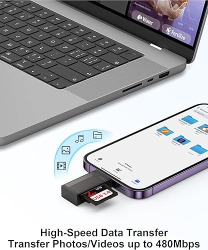 [Lightning-Fast Transfer – Up to 60MB/s] – Enjoy blazing speeds of 40MB/s to 60MB/s with this Lightning to SD card reader—ideal for quickly moving large photo and video files. The card reader for iphone supports storage capacities up to 2TB, and compatible with JPEG, RAW, and 4K video formats. Perfect for photographers and videographers who need to save time on every transfer.