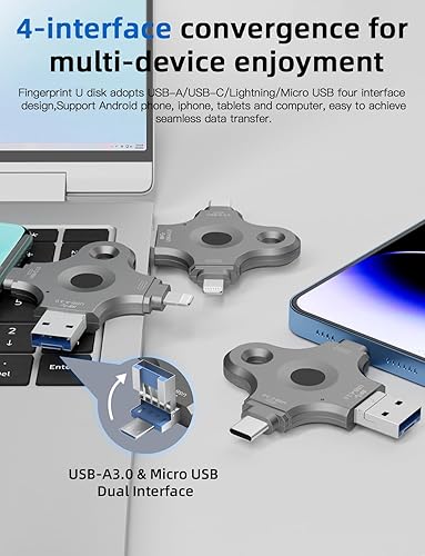 USB3.0 4-in-1 Fingerprint encrypted USB Flash Drive for iPhone USB Memory Stick Thumb Drives High Speed USB Stick,Photo Stick External Storage for iPhone/iPad/Android/PC 128G