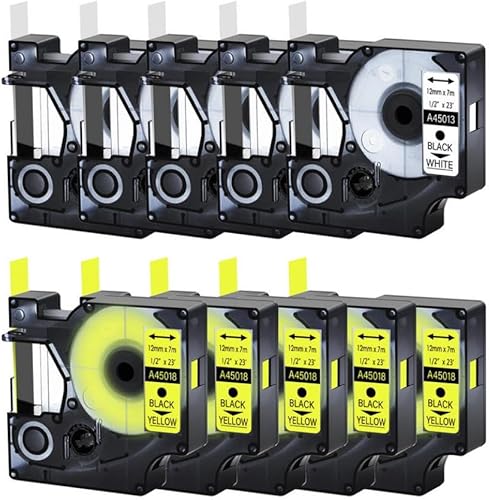 Compatible 10Pcs Black On White and Black On Yellow Label Tapes 12-19mm for D1 45013 45018 45803 LabelManager Models 300 350 350D 360D 400