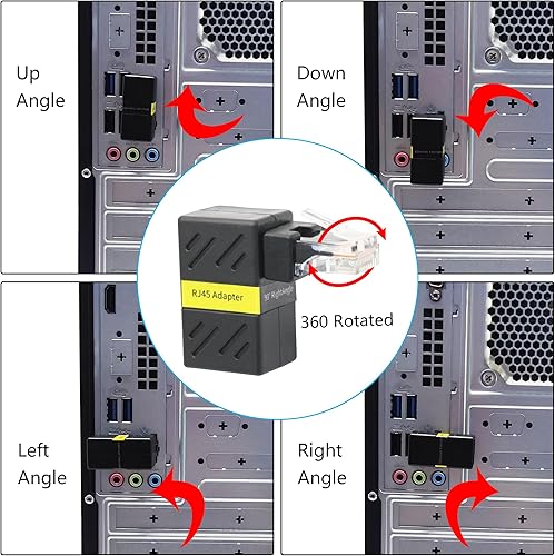 【90 Degree Design】RJ45 male to female gigabit adapter, 90 degree right angle solve limited connectivity between devices, also ok be easily go through the narrow gap, convenience for you while extending port & cable the lifespan.