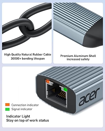 【Dependable & Durable Connectivity】 Tailored for seamless plug-and-play connectivity between USB-C devices and wired networks, ensuring reliable gigabit ethernet connectivity even in areas with inconsistent or extended wireless coverage.