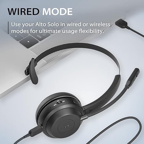 [ALL DAY COMFORT] The Alto Solo headset’s rotating mic can rotate 270° and allows you to wear it either on your left or right ear. The adjustable headband also enables you to find the perfect fit for your needs.