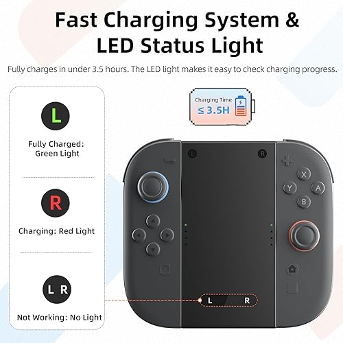 【Charge While Playing – Type-C Cable Included】 Never stop the action. This charging grip compatible with Switch 2 Joycon powers your controllers while you game, eliminating battery anxiety. With the included Type-C cable, this charger for Switch 2 ensures you're always charged up and ready for long sessions without disruption.