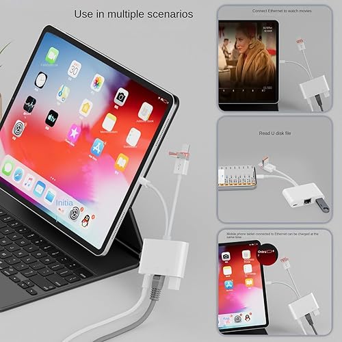 3 IN 1 Ethernet Adapter◆This Wired Ethernet Adapter for iPhone/iPad with USB 3 Camera Reader+Charging Port.Compatible with iPhone 14/13/12 mini/12 Pro / 12 Pro Max /11 / 11 Pro / X / XS / XS Max/XR/ 8/8 Plus/7/7 Plus,Support Surfing internet and Charging at the same time..