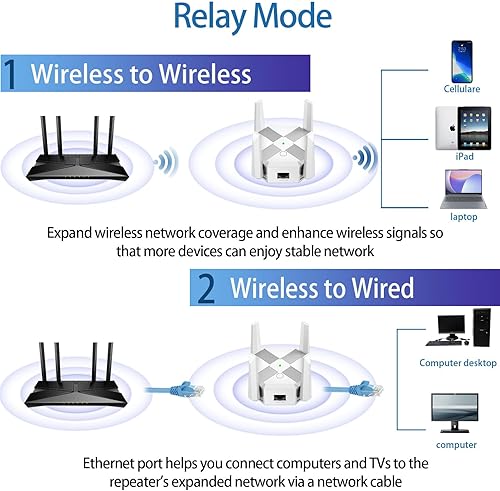 【Security Protection 】: The latest WPS/WPA/WPA2 encryption protocol ensures the security of users accessing the internet. The 3-sided cooling design ensures quick cooling of WIFI relays during operation, improving their lifespan and WiFi stability