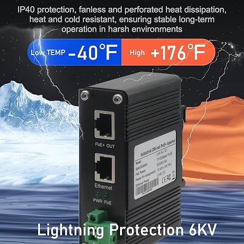 Hardened & Compact Metal Casing: Designed for harsh environments with an operating temperature range from -40°F to 176°F. The outdoor rated poe+ injector guarantees reliable performance, even in extreme conditions.