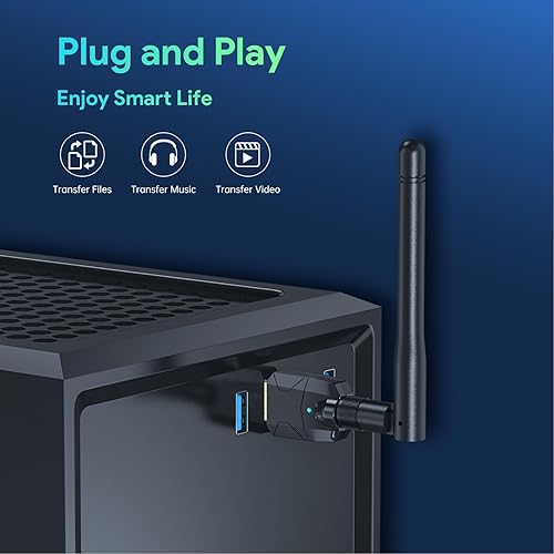 Plug and Play Compatibility: Compatible for 11, 10, 8.1, this USB Bluetooth dongle is plug and play, excellent for connecting Bluetooth keyboards, mouse, headphones, and speakers.