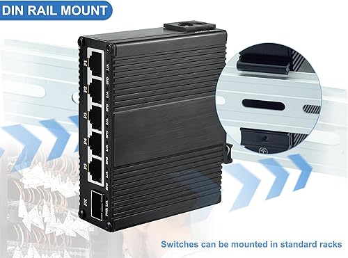 Industrial-Grade Durability: With a rugged metal housing and an operating temperature range of -40°F to 176°F, this Ethernet switch performs in harsh environments. Its IP40-rated ports and triple protection (anti-surge, grounding terminal, and anti-reverse) prevent overloads, ensuring long-lasting performance even in dusty industrial settings