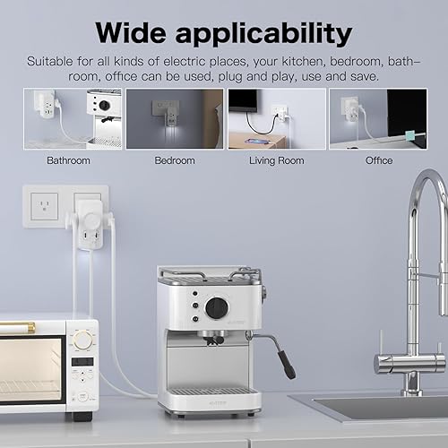 Multi Plug Socket Extender with Night Light and USB Surge Protector, 3 USB Wall Chargers, Suitable for Wide spacing sockets for Travel, Home, and University Dormitories (White)(White)