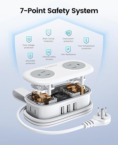 【7-in-1 Power Strip with USB Ports】Flat extension cord boasts 4 AC outlets and 3 USB Ports. ORICO power strip can charge up to 7devices at the same time, so you don’t have to worry about not having enough sockets.
