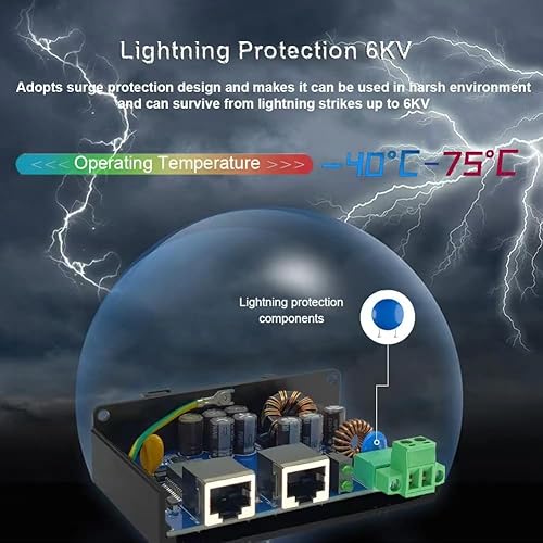 [ Industrial Grade PoE injector ]: Our poe injector adopts surge protection design and makes it can be used in harsh environment and can survive from lightning strikes up to 6KV. The operation temperature is -40℃ to 80℃ ( -40℉ to 176℉).
