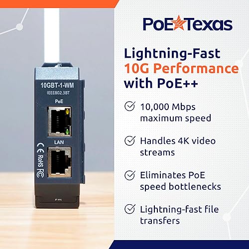 High-Speed 10G Performance: Use this PoE++ injector to upgrade your network infrastructure with blazing-fast 10 Gigabit speeds with 10/100/1000/10000 Mbps data transmission to handle today's high-bandwidth applications and tomorrow's growing data needs.