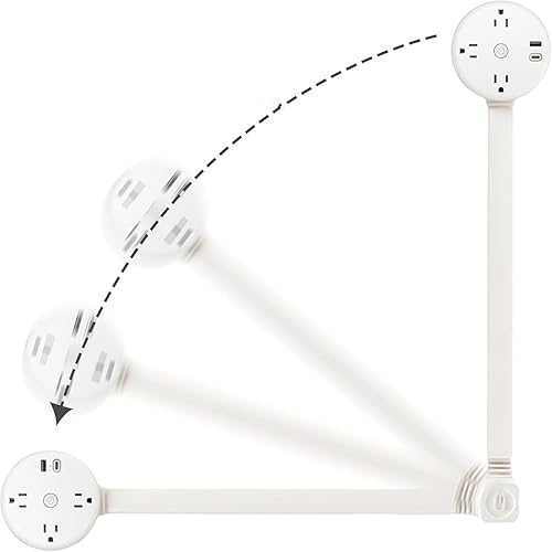 Retractable Power Strip Extender, 17-27in Rotating Arm, 3 AC & Dual USB Ports, No Bending, Renter-Friendly, V-0 Flame Retardant, ETL Certified