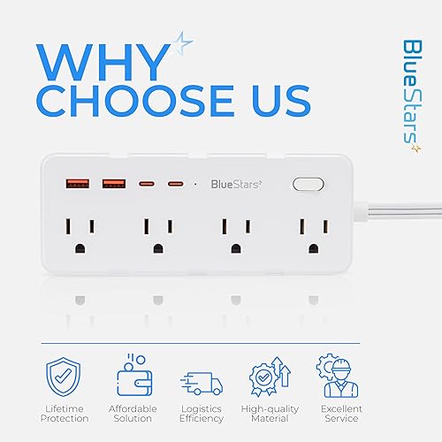 Overload & Surge Protection: This power strip is equipped with 1050J surge protection, as well as safeguards against overloads, short circuits, and over-current. Featuring a built-in circuit breaker, the ON/OFF switch automatically shuts off to protect your valuable electronics, ensuring a secure and dependable charging experience.