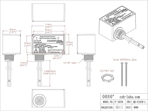 Split-phase 120/240VAC Surge Protective Device, universally connects to any manufacturer’s load center (breaker box), easy to mount cable protection modules. Safeguard your HVAC equipment and home appliances with the Surge Protective Device, offering four modes of protection (L-L, L-N, L-G, N-G) to shield against power surges and prevent potential damage.