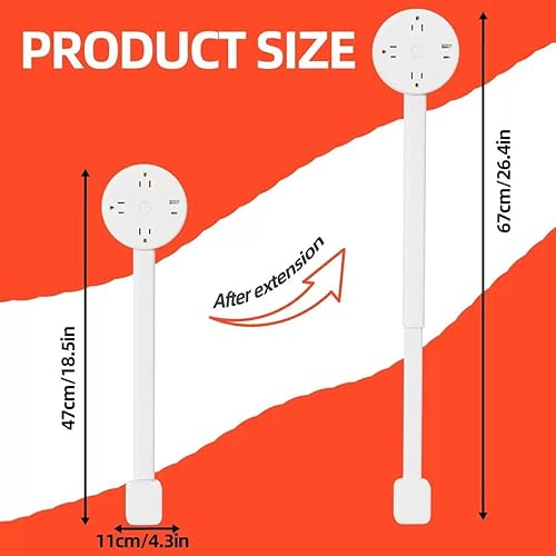 The New Round Power Socket Expander with USB-C and USB-A Ports, The Expandable Socket Rod extends 18-26 inches, and The Base rotates 180 Degrees, which is Convenient for Flexible Setting.