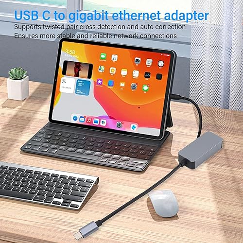 USB C to gigabit ethernet adapter supports twisted pair cross detection and auto correction, ensuring more stable and network connection.