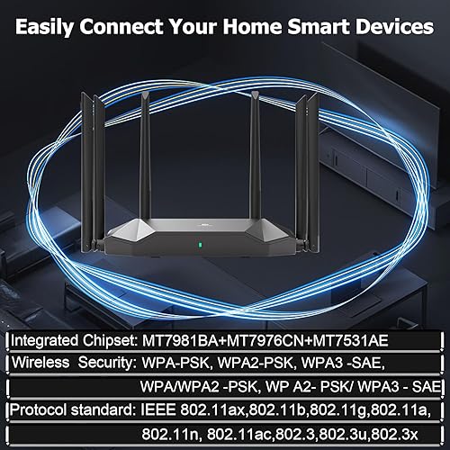 【Strong Signal Coverage】[Powerful Signal Coverage] This wireless dual band wifi 6 router uses a 5dBi high gain omni-directional antenna with wireless signal range coverage up to 2800 square feet. Compared with wifi5, wifi6 penetration is more powerful and makes the signal more stable, so you can have stable internet access and game at home anytime and anywhere
