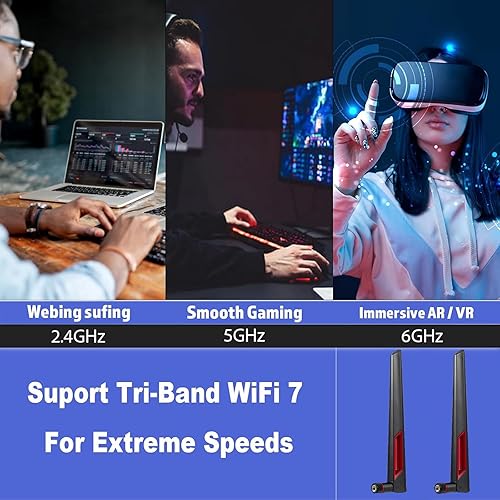 COMPATIBILITY: Designed for WiFi 7 enabled devices including PC desktop computers, gaming motherboards, and ASUS routers with RP-SMA male connector interface, Supports 802.11n, 802.11ax, 802.11ac, 802.11.be;