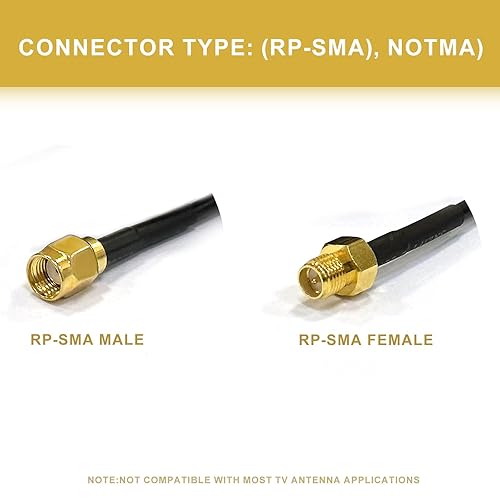 【Please Note】 - The connector is (RP-SMA Male to RP-SMA Female) -- 【RP-SMA Male: a hole in connector center】 -- [RP-SMA Female: pin in connector center] --> please know the difference between (RP-SMA) and (SMA) before purchase. 【not fit TV's and TV Antennas】