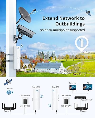 5KM LONG RANGE: The WiFi bridge is equipped with dual 14dBi high gain antennas with strong anti-interference ability, which can easily extend the network and surveillance coverage distance to 3-5KM buildings, barns, stores, farms, garages, warehouses, etc., which saves you subscription fees.