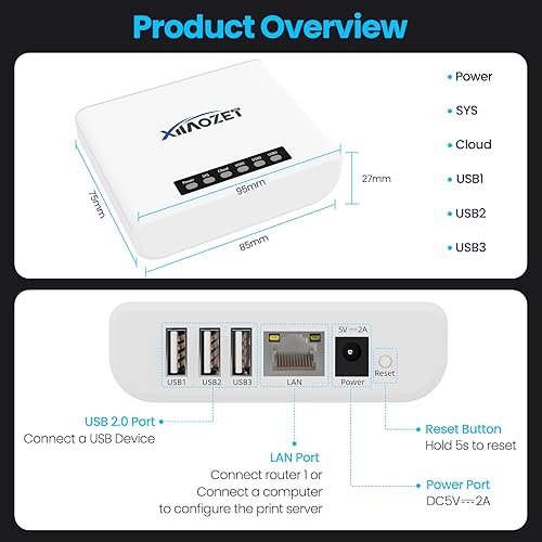 Multi-Function Device: Serves as both a USB server and print server, enabling multiple computers on the same network to share USB devices, such as printers, scanners, or storage devices, eliminates direct computer-to-device cabling