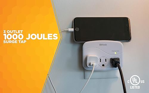 Woods 41034 Surge Protector with 3 Power, 3-Outlet 1000J of Protection (Pack of 6)(3 Outlets (Pack of 6))