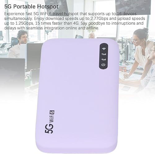 Zopsc 5G WiFi Mobile Hotspot Device Portable Router with WiFi6 6100mAh Battery Nano SIM Slot Support 16 Devices 2.77Gbps Download Purple